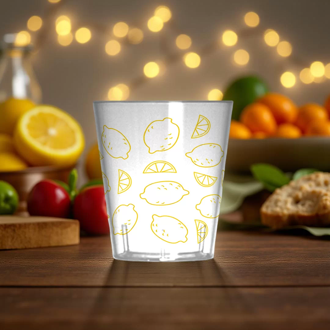 Vaso para chupitos con 80 ml de capacidad. Pequeño y resistente. Fabricado en Polipropileno.